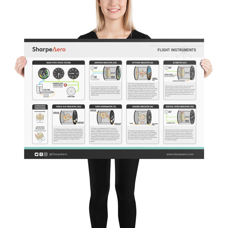 It is important to know about the standard flight instruments in your airplane (sometimes called the six-pack), so we've adapted diagrams from our Flight Training book into this poster. It covers the details of both the gyroscopic and pitot-static instruments, including: