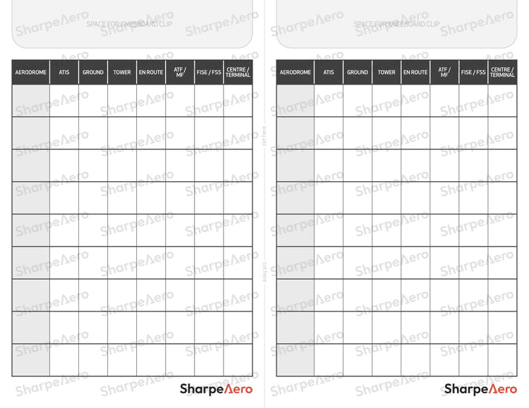 SharpeAero's Frequency Chart 2.0 iPad & kneeboard template ensures you always have quick access to the local frequencies around your home airport that you use most often, or use it for long-distance cross countries where you need to keep track of many frequencies en route. Add airport names/codes to the left column, and their respective frequencies in the body of the chart.