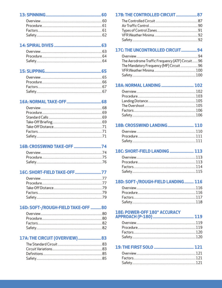 Comprehensive coverage of the flight exercises required for the private and commercial pilot licences