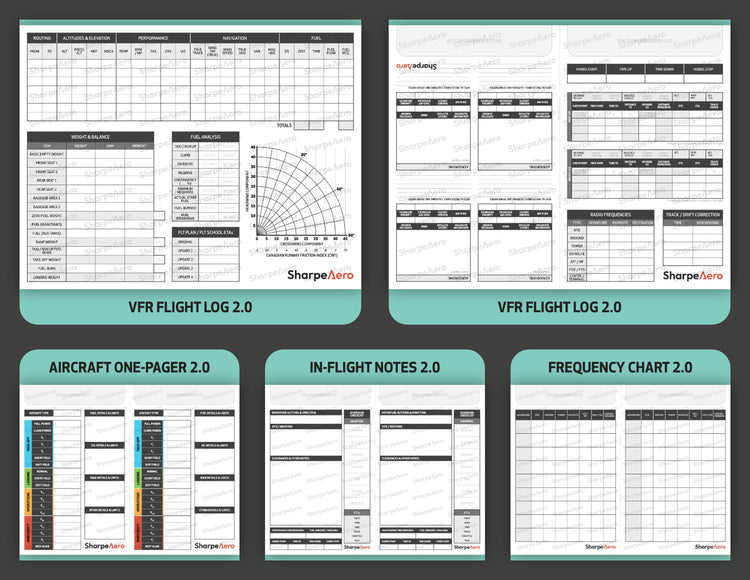 SharpeAero's In-Flight Notes 2.0 iPad & kneeboard template is perfect for taking the everyday notes required during flight. It includes sections for: